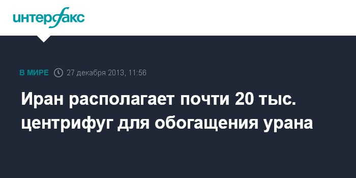 Москва. 27 декабря. INTERFAX.RU - Иран располагает 19 тыс. центрифуг для обогащения урана, сообщил глава Организации по атомной энергии исламской республики Али Акбар Салехи.