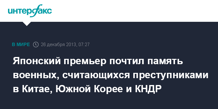 Как отмечают наблюдатели, данный жест премьера вызовет крайне негативную реакцию в Пекине, Сеуле и Пхеньяне, которые расценивают посещение японскими официальными лицами храма Ясукуни как оскорбление национальных чувств китайского и корейского народов.