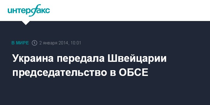 Москва. 2 января. INTERFAX.RU - С 1 января 2014 года в Организации по безопасности и сотрудничеству в Европе (ОБСЕ), крупнейшей в мире региональной организации, будет председательствовать Швейцария во главе с федеральным советником и, по совместительству, министром иностранных дел Конфедерации Дидье Буркхальтером.