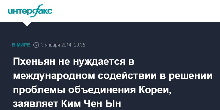 Москва. 3 января. INTERFAX.RU - Новый курс Пхеньяна на оздоровление отношений между Севером и Югом Кореи провозгласил северокорейский лидер Ким Чен Ын в своей новогодней речи, текст которой был передан в "Интерфакс" посольством КНДР в Москве.