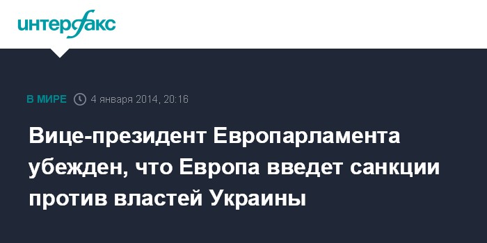 Вице-президент Европарламента убежден, что Европа введет санкции против властей Украины