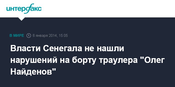 Судно "Олег Найденов" было задержано военными Сенегала в Атлантическом океане, в 46 милях от побережья Гвинеи-Биссау. Команда судна состоит из 62 граждан России и 23 - Гвинеи-Биссау. Задержание проводилось без объяснения причин, в грубой форме. Капитан судна был закован в наручники. "Олег Найденов" был конвоирован в военный порт Дакара.