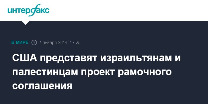 Москва. 7 января. INTERFAX.RU - Посол США в Израиле Дан Шапиро заявил, что в течение нескольких недель израильтянам и палестинцам будет представлен проект рамочного соглашения по урегулированию конфликта между ними, сообщает во вторник агентство AP. По его словам, в соглашении будут содержаться пункты, касающиеся безопасности, границ, статуса Иерусалима и других ключевых вопросов.