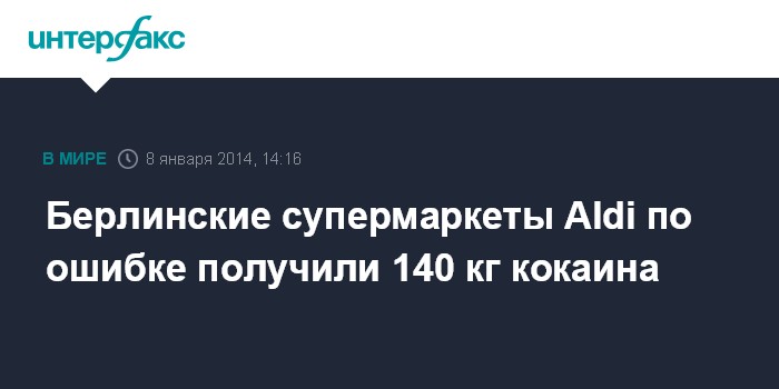 Берлинские супермаркеты Aldi по ошибке получили 140 кг кокаина
