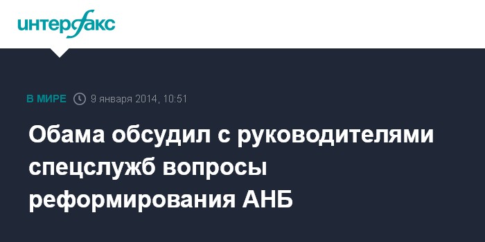 Москва. 9 января. INTERFAX.RU - Президент США Барак Обама обсудил с руководителями Агентства национальной безопасности (АНБ), национальной разведки, ЦРУ и ФБР пути реформирования АНБ, сообщают в четверг западные СМИ.