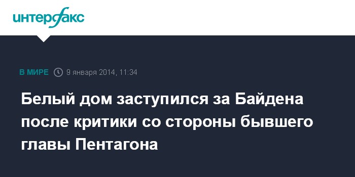 Москва. 9 января. INTERFAX.RU - Администрация Барака Обамы выступила в защиту вице-президента Джозефа Байдена, подвергшегося критике со стороны бывшего министра обороны Роберта Гейтса, сообщает в четверг британская телерадиокорпорация BBC.