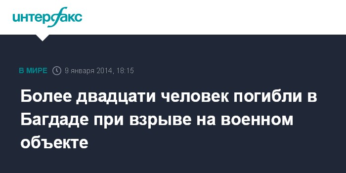 Дубай. 9 января. INTERFAX.RU - По последним данным, 21 военнослужащий погиб в результате мощного взрыва на военном объекте в столице Ирака Багдаде, сообщает в четверг агентство AP.
