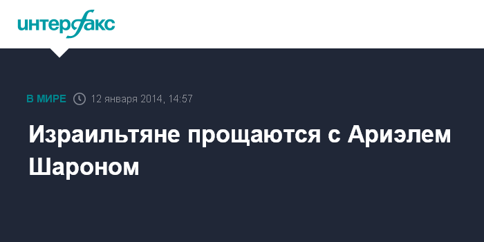Бывший глава израильского правительства А.Шарон скончался в минувшую субботу в возрасте 85 лет в израильской больнице Шеба. Он находился в коме с 2006 года после того, как перенес инсульт. 1 января его состояние значительно ухудшилось - отказали многие жизненно важные органы.