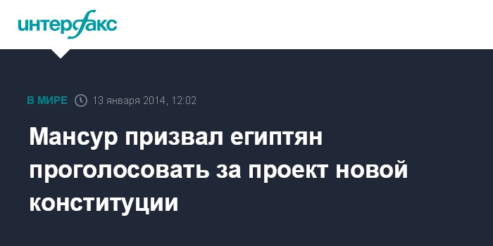 Москва. 13 января. INTERFAX.RU - Временный президент Египта Адли Мансур призвал жителей страны сказать "да" на референдуме по проекту новой конституции.