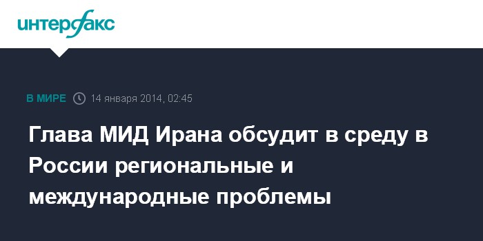 "Д.Зариф обсудит с российскими официальными лицами региональные и международные проблемы, а также ход выполнения соглашений между двумя странами", - отмечают иранские СМИ.