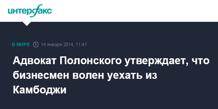 Адвокат Полонского утверждает, что бизнесмен волен уехать из Камбоджи