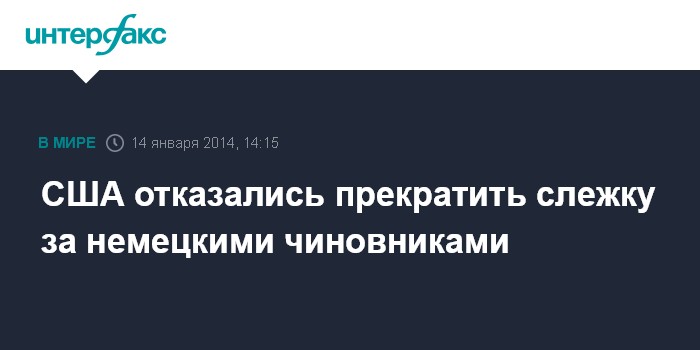 Москва. 14 января. INTERFAX.RU - Администрация США отказалась прекратить слежку за немецкими политиками высокого ранга, сообщает издание Sueddeutsche Zeitung со ссылкой на источники в спецслужбах Германии.