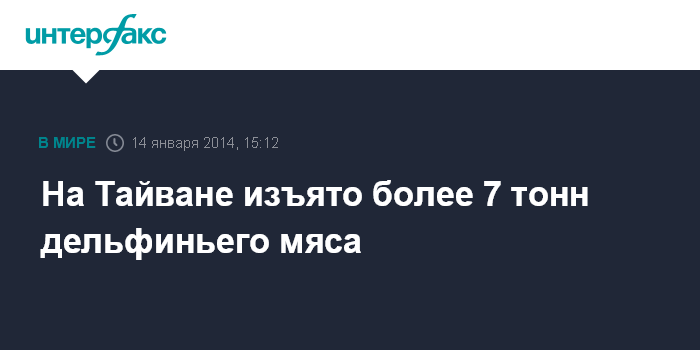 Гонконг. 14 января. INTERFAX.RU - Власти Тайваня конфисковали в городе Гаосюне около 7,65 тонн мяса дельфинов - одну из крупнейших из когда-либо обнаруженных партий этого запрещенного продукта.