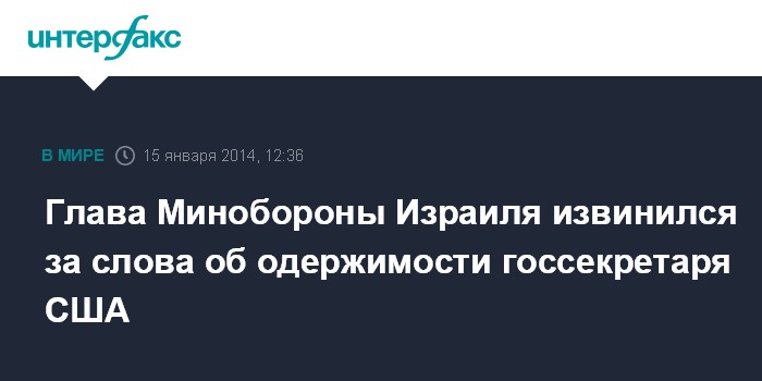 Москва. 15 января. INTERFAX.RU - Министр обороны Израиля Моше Яалон принес извинения за приписываемые ему высказывания в адрес госсекретаря США Джона Керри и его планов по мирному урегулированию на Ближнем Востоке.