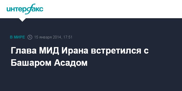 Дубай. 15 января. INTERFAX.RU - Глава МИД Ирана Джавад Зариф, прибывший с визитом в Дамаск, провел в среду переговоры с президентом Сирии Башаром Асадом.