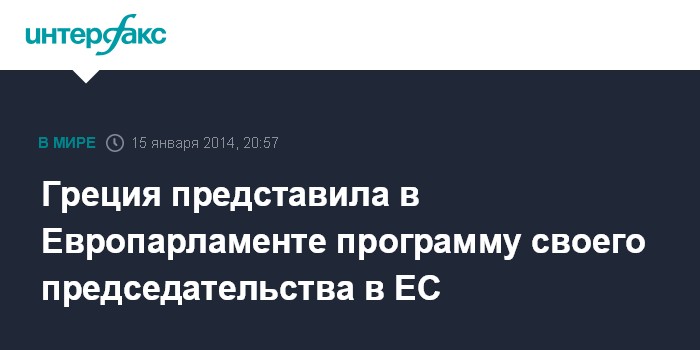 Греция представила в Европарламенте программу своего председательства в ЕС