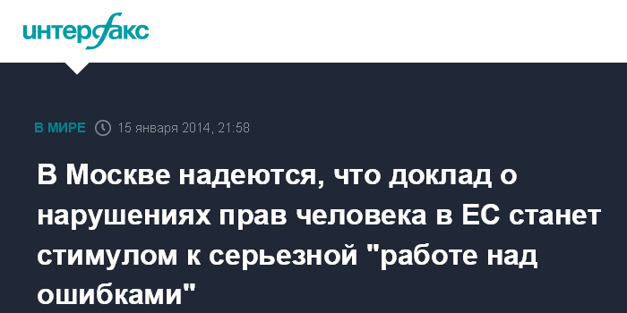 В Москве надеются, что доклад о нарушениях прав человека в ЕС станет стимулом к серьезной "работе над ошибками"