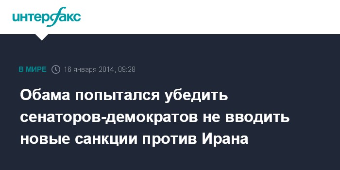 Москва. 16 января. INTERFAX.RU - Президент США Барак Обама на встрече с группой сенаторов-демократов заявил, что пока не видит необходимости во введении дополнительных санкций против Ирана, передает в четверг агентство AP.