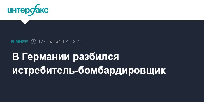 Москва. 17 января. INTERFAX.RU - Германский истребитель-бомбардировщик "Торнадо" потерпел крушение во время учебного полета, сообщили в пятницу журналистам военнослужащие армии ФРГ.