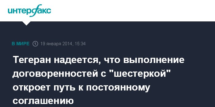 Тегеран надеется, что выполнение договоренностей с "шестеркой" откроет путь к постоянному соглашению