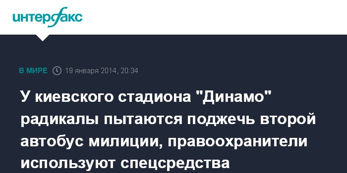 Москва. 19 января. INTERFAX.RU - Сотни митингующих остаются на ул. Грушевского возле стадиона "Динамо" в центре Киева. Они находятся напротив кордона сотрудников внутренних войск, "беркутовцев" и милицейских автобусов.