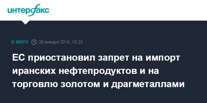ЕС приостановил запрет на импорт иранских нефтепродуктов и на торговлю золотом и драгметаллами