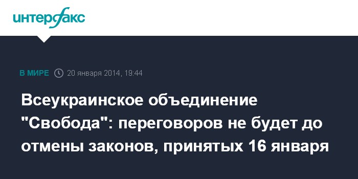 Всеукраинское объединение "Свобода": переговоров не будет до отмены законов, принятых 16 января