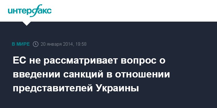 Брюссель. 20 января. INTERFAX.RU - Верховный представитель ЕС по вопросам внешней политики и политики безопасности, вице-президент Европейской комиссии Кэтрин Эштон дает понять, что Брюссель в настоящий момент не рассматривает вопрос о введении санкций в отношении Украины.