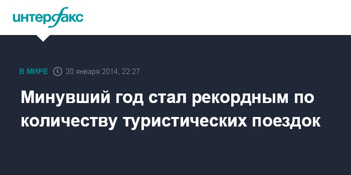 Мадрид. 20 января. INTERFAX.RU - Количество международных туристических поездок достигло рекордных 1,09 млрд в 2013 году, говорится в обнародованном в понедельник докладе Всемирной туристской организации.
