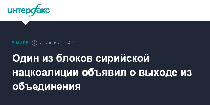 Москва. 21 января. INTERFAX.RU - Один из крупнейших блоков Национальной коалиции сирийских революционных и оппозиционных сил (НКСРОС) - Сирийский национальный совет (СНС) - объявил о выходе из объединения, сообщили западные СМИ.