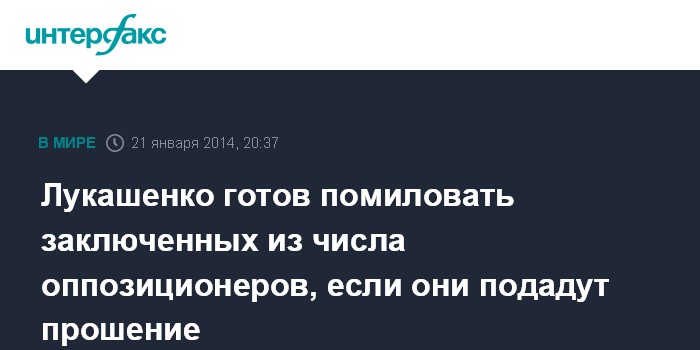 Минск. 21 января. INTERFAX.RU - Президент Беларуси Александр Лукашенко заявляет, что готов помиловать так называемых политзаключенных, если те подадут на его имя прошение о помиловании.