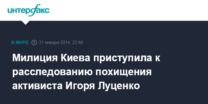 Киев. 21 января. INTERFAX.RU - Милиция Киева открыла уголовное производство в Киеве общественного активиста, члена ВО "Майдан" Игоря Луценко.