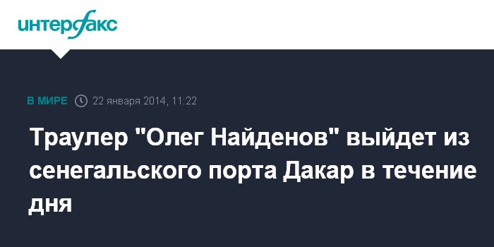 Он добавил, что "Олег Найденов" выйдет из порта Дакар в Сенегале в течение дня.