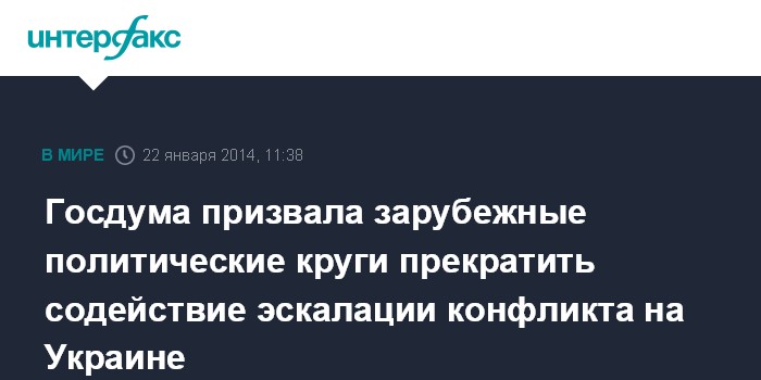 "Государственная дума призывает зарубежные политические круги, которые в нарушение норм международного права вмешиваются во внутренние дела суверенной Украины, прекратить содействие дальнейшей эскалации конфликта", - говорится в принятом в среду заявлении российских депутатов.