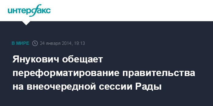 Киев. 24 января. INTERFAX.RU - Президент Украины Виктор Янукович пообещал, что правительство будет переформатировано на внеочередной сессии парламента 28 января.
