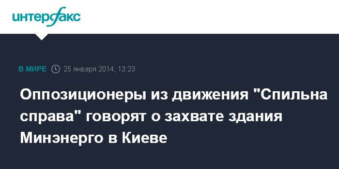 На своей страничке в Фейсбуке в субботу утром он написал: "Активистами Спильной справы только что взято министерство энергетики и угольной промышленности". В комментарии 5-му каналу А.Данилюк сообщил, что охранники ведомства сопротивления не оказывали.
