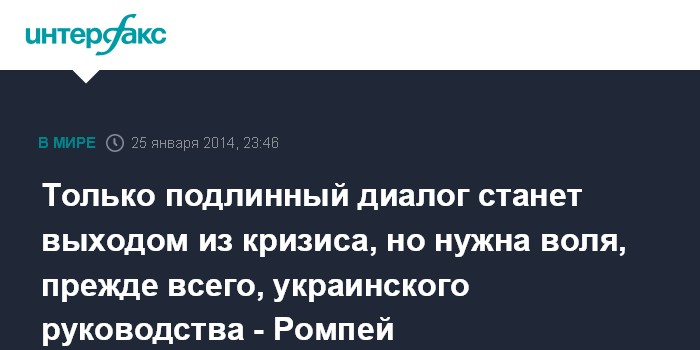Только подлинный диалог станет выходом из кризиса, но нужна воля, прежде всего, украинского руководства - Ромпей