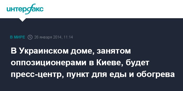 Москва. 26 января. INTERFAX.RU - Участники акций протеста в Киеве планируют разместить в Украинском доме, который ночью покинули силовики, пункт для обогрева и приема пищи, сообщил комендант Украинского дома Алексей Якушевский. "Думаю, что здесь будет размещен пресс-центр для журналистов, а также пункт для приема пищи и обогрева тех сотен, которые мы не можем разместить в Доме профсоюзов", - сказал он утром в воскресенье агентству "Интерфакс-Украина".