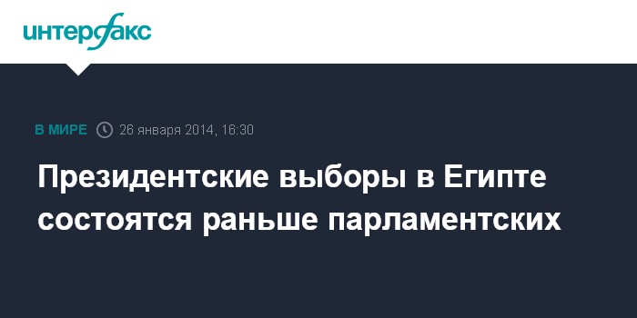 Москва. 26 января. INTERFAX.RU - Выборы нового президента Египта пройдут раньше парламентских, сообщил временный глава египетского государства Адли Мансур.