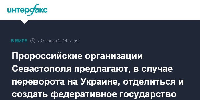 Пророссийские организации Севастополя предлагают, в случае переворота на Украине, отделиться и создать федеративное государство Малороссию