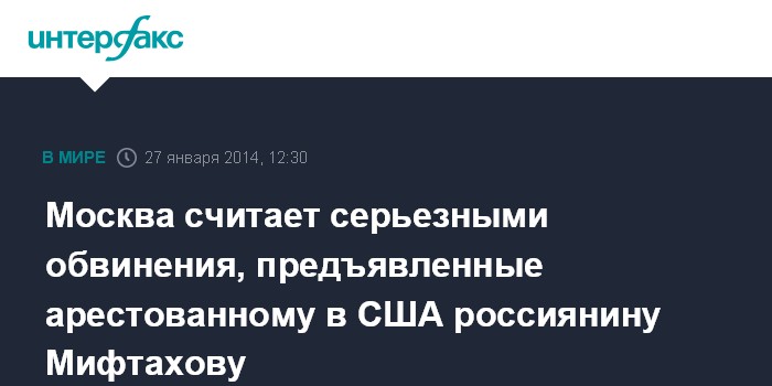 Москва считает серьезными обвинения, предъявленные арестованному в США россиянину Мифтахову