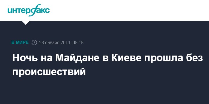 Москва. 28 января. INTERFAX.RU - С утра в центре Киева обстановка на занимаемой митингующими территории спокойная.