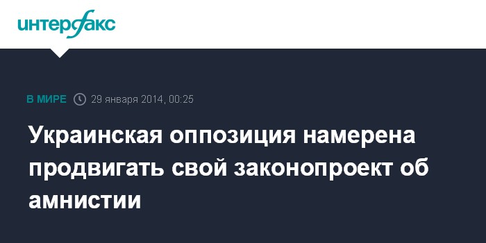 Киев. 29 января. INTERFAX.RU - Лидер Всеукраинского объединения "Свобода" Олег Тягнибок заявляет, что оппозиция намерена работать над тем, чтобы в парламенте был проголосован ее законопроект об амнистии участников акций протеста в Украине.