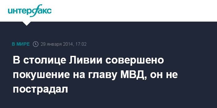 Дубай. 29 января. INTERFAX.RU - Исполняющий обязанности министра внутренних дел Ливии Ас-Садик Абдель-Карим подвергся атаке со стороны неизвестных в столице страны Триполи, передает в среду агентство AP.