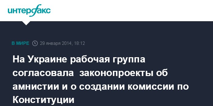 Киев. 29 января. INTERFAX.RU- Рабочая группа согласовала законопроект об амнистии и проект постановления о создании комиссии по Конституции, сообщил председатель Верховной Рады Владимир Рыбак.