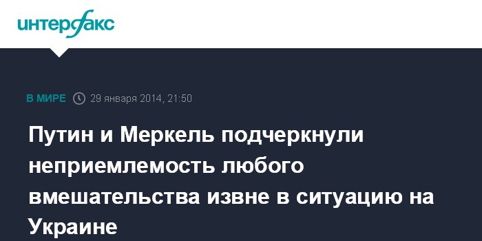 Путин и Меркель подчеркнули неприемлемость любого вмешательства извне в ситуацию на Украине