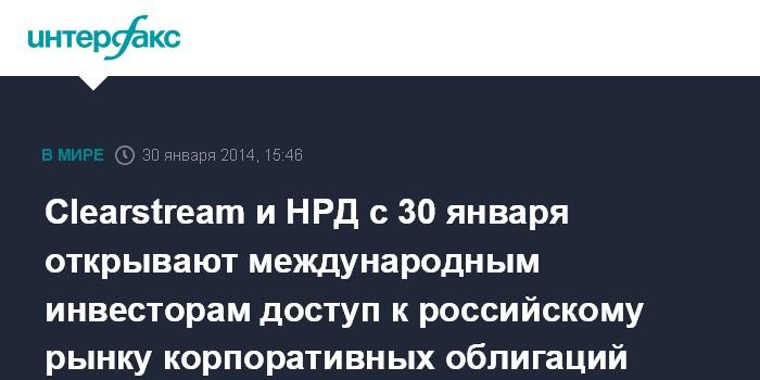 Clearstream и НРД с 30 января открывают международным инвесторам доступ к российскому рынку корпоративных облигаций