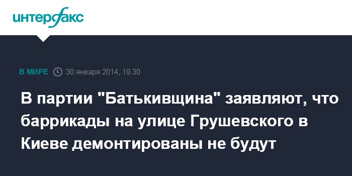 В партии "Батькивщина" заявляют, что баррикады на улице Грушевского в Киеве демонтированы не будут