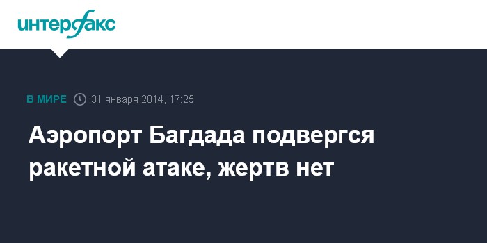 Дубай. 31 января. INTERFAX.RU - Две ракеты разорвались на территории международного аэропорта в столице Ирака Багдаде, сообщает в пятницу веб-сайт египетской газеты "Аль-Ахрам".