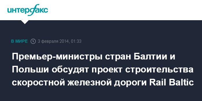Как ожидается, главным вопросом на встрече А.Ансипа, Л.Страуюма, премьер-министров Литвы Альгирдаса Буткевичуса и Польши Дональда Туска станет строительство скоростной железнодорожной магистрали Rail Baltic от Таллина до Варшавы и в перспективе до Берлина с выходом в Центральную Европу.